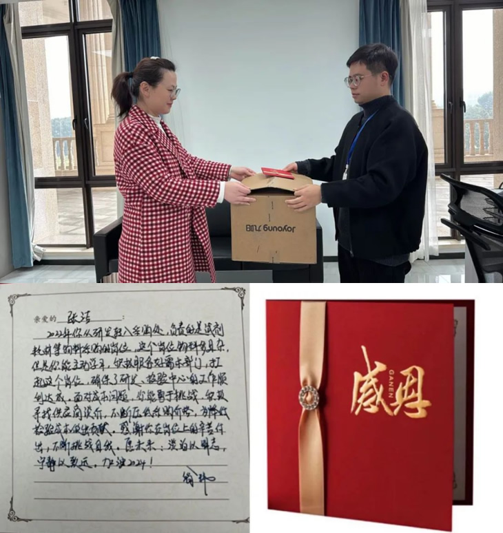 海陵衷心對他們的付出表示感謝,并為其準(zhǔn)備了感恩卡和禮物,直屬領(lǐng)導(dǎo)“驚喜出現(xiàn)”,將手寫感謝卡和禮物交給他們!