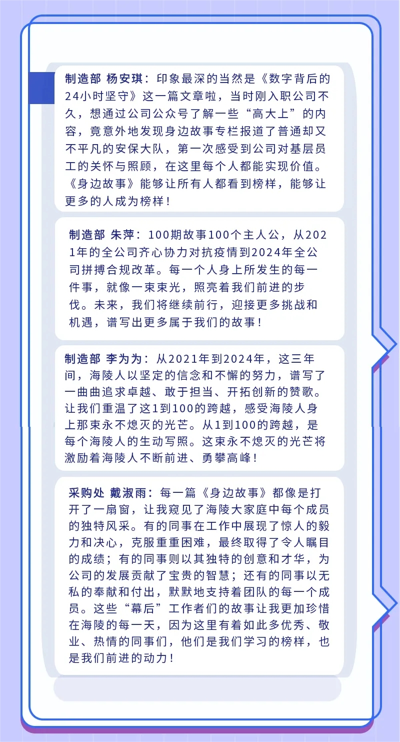 在技術(shù)部、制造部,有這樣一群海陵人,他們腳踏實(shí)地,行穩(wěn)致遠(yuǎn),為助力海陵的生產(chǎn)運(yùn)行用心付出。他們用一言一行,踐行海陵價(jià)值觀,譜寫著屬于海陵人身邊的精益故事。