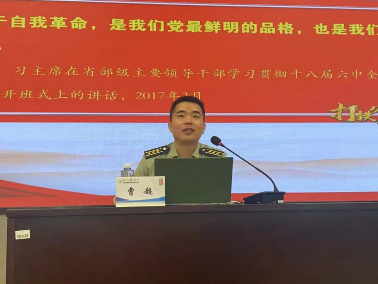 會(huì)議的第二項(xiàng),全體與會(huì)人員進(jìn)行了專題黨課學(xué)習(xí)。陸軍工程大學(xué)政治工作系曹超副教授為大家進(jìn)行了主題為《勇于自我革命是我們黨最鮮明的品格》的專題匯報(bào)。曹教授肯定了海陵黨支部的凝聚力、戰(zhàn)斗力,并以黃培炎和毛澤東關(guān)于“如何跳出治亂興衰的歷史周期律”的探討為切入點(diǎn),從以下三個(gè)方面進(jìn)行了詳細(xì)闡述: