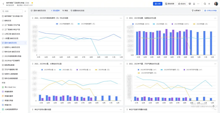 最終完成的儀表盤,改變了廠區(qū)能耗數(shù)據(jù)收集困難、分析困難、及時(shí)性低的問題。通過儀表盤這一新工具將原本獨(dú)立的數(shù)據(jù)整合起來,橫可看每月數(shù)據(jù)變化,縱可查往年同比增長,小可看單體設(shè)備耗能,大可覽全廠能耗起伏。在海陵實(shí)現(xiàn)能源精細(xì)化管理、節(jié)能減排和成本控制目標(biāo)的道路上給予了幫助。項(xiàng)鈺茹還帶著這個(gè)儀表盤參與了9月20日的海陵飛書案例大賽,取得了二等獎(jiǎng)的好成績(jī)。