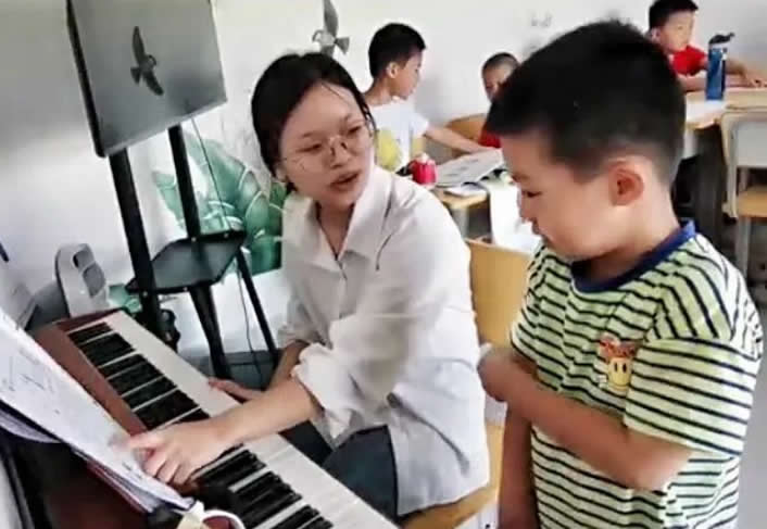接下來(lái),小朋友們迫不及待地展示自己在暑托班期間的學(xué)習(xí)成果。首先是音樂(lè)課的學(xué)習(xí)成果,大家在老師的帶領(lǐng)下進(jìn)行兒歌《快樂(lè)的小跳蛙》的合唱。