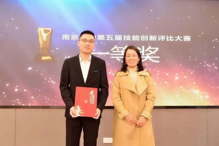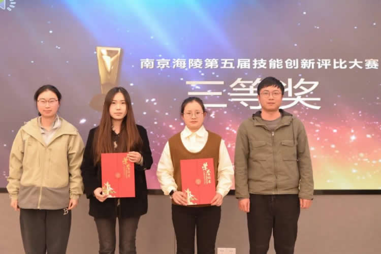 選手匯報結(jié)束后,現(xiàn)場根據(jù)評委打分,當(dāng)場公布了排名,共評選出一等獎一個,二等獎兩個,三等獎兩個。現(xiàn)場請李總為一等獎獲獎選手頒獎,并創(chuàng)新邀請了往屆技能創(chuàng)新大賽獲獎選手和工匠傳承室牽頭人為二等獎和三等獎獲獎選手頒獎。