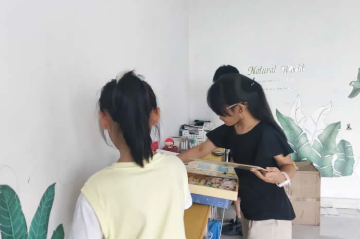 8月16日下午,孩子們在老師的帶領(lǐng)下,對教室、宿舍樓圖書角進行了掃除,一個半小時的時間里,他們把教室清空,把學習用品和手工材料碼放得整整齊齊。清理完教室之后,孩子們又轉(zhuǎn)戰(zhàn)宿舍圖書角,將書架臺面、夾層都擦得一塵不染。