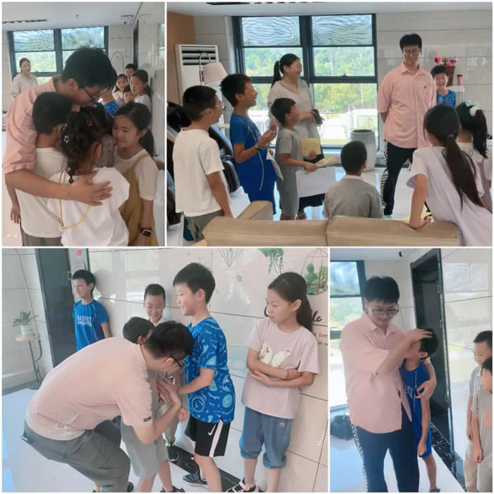 展示完結(jié)營作品之后,老師們分別對孩子們在暑托班期間的表現(xiàn)進行了點評,對孩子們未來的學習生活送上了美好的祝福和期許。小朋友們認真地聽著老師的話,默默地記在心中。我們的鏡頭有幸捕捉到孩子們和老師擁抱的場面。暑托班雖然臨近結(jié)束,但老師和孩子們之間的回憶都會被大家珍藏在心中。