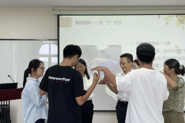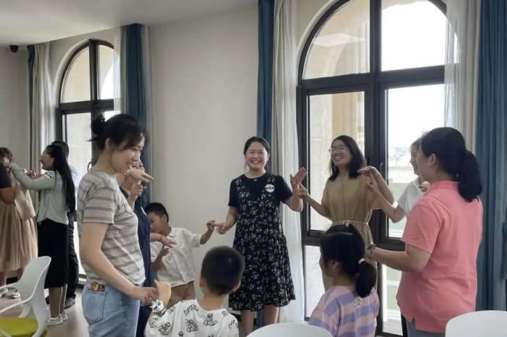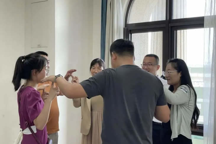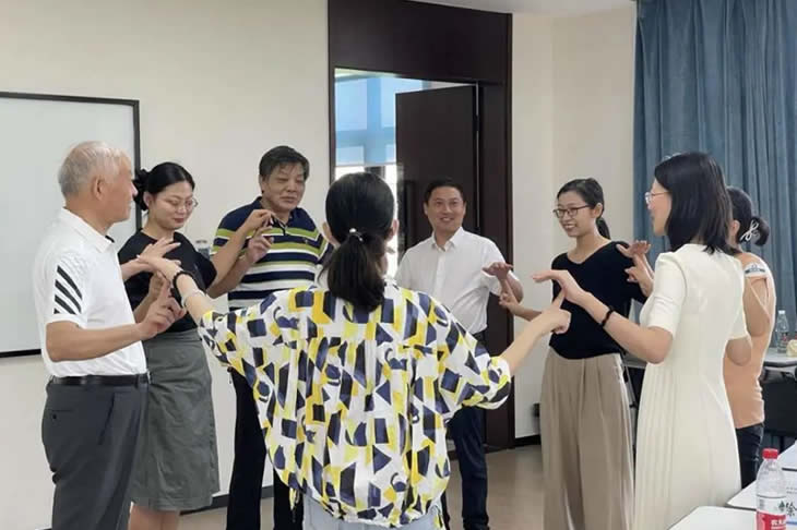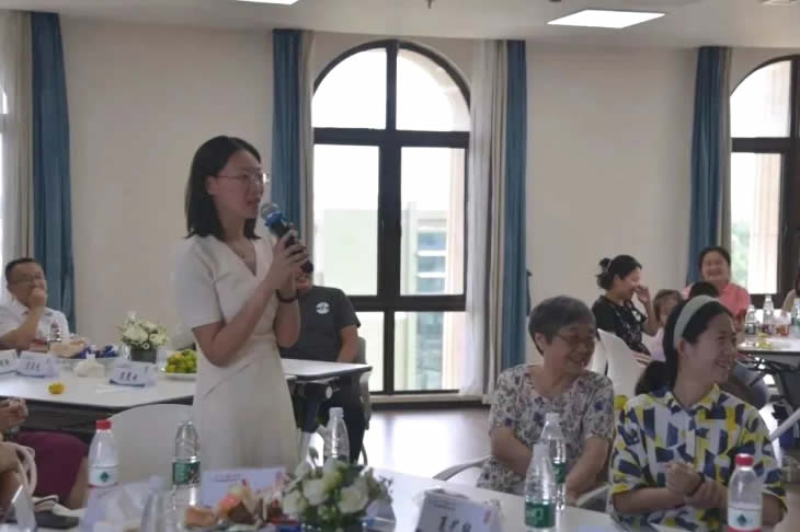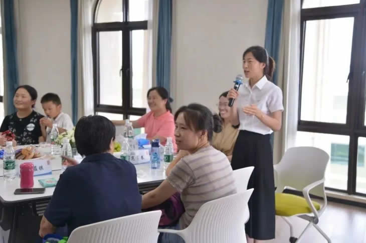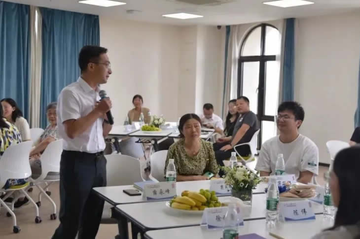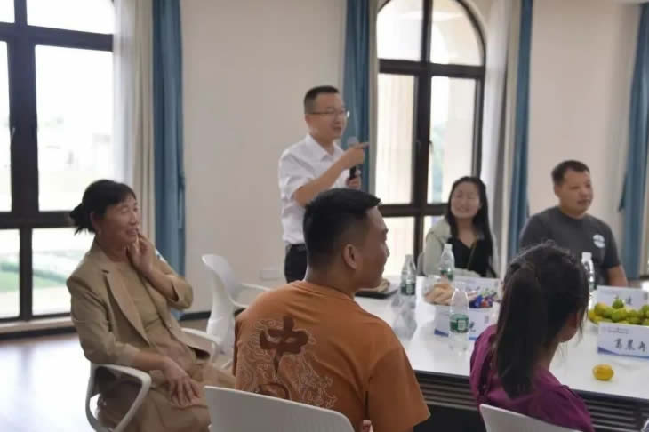 結(jié)束參觀后,家屬們跟隨工匠走入座談會(huì)現(xiàn)場(chǎng),傾聽主持人介紹海陵藥業(yè)的企業(yè)文化。座談會(huì)開始,大家在“抓手指”游戲中打破拘謹(jǐn)、放松心情,歡聲笑語(yǔ)充盈著整個(gè)會(huì)議室。