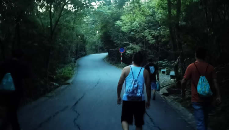 行程未半,天色漸暗,偶有光亮透過枝椏投在路上。大家步伐穩(wěn)健地穿過或明或暗的登山路,堅(jiān)定地向上攀登。