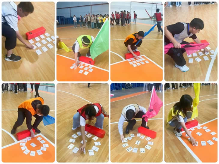 活動正式開始!“超音速”率先成為大家團(tuán)隊磨合的項(xiàng)目。各隊成員你來我往,奮力奔跑。起先,大家還沒領(lǐng)悟到比賽訣竅,只是想著自己以最快的速度往返翻牌。隨著賽程推進(jìn),各隊紛紛意識到溝通的重要性,紛紛形成了以記錄員為圓心的“討論組”。隨著各隊對牌面分布的逐漸明晰,比賽也進(jìn)入白熱化的“沖刺階段”,并很快角逐出排名!
