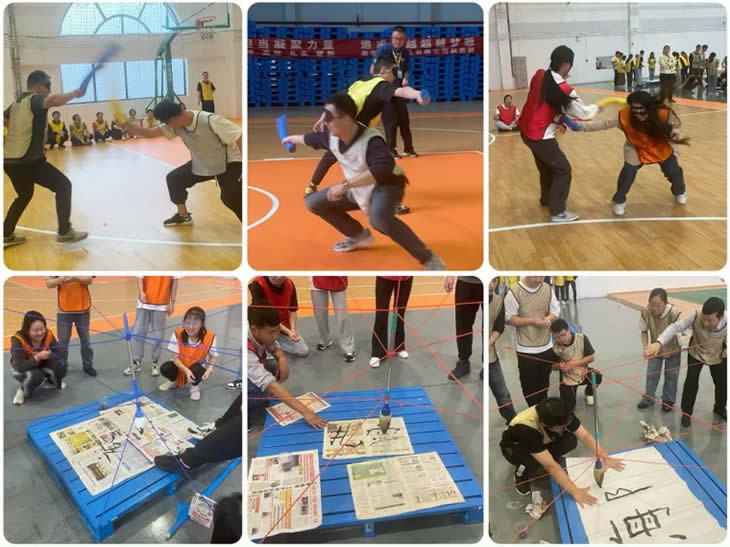 “華山論劍”要求團(tuán)隊全員共同指揮一人,彼此競爭切磋。隨著戰(zhàn)況的緩和激烈,時而寂然無聲,時而人聲鼎沸。勝負(fù)只在一瞬之間,現(xiàn)場隨著精彩的對決而爆發(fā)出陣陣歡呼聲?!肮怖L藍(lán)圖”則要求一人指揮,全員合力達(dá)成目標(biāo)。參與的成員不由自主地屏住呼吸,生怕自己的呼吸擾亂了正在書寫的筆尖?!昂A辍薄罢\實(shí)”“守信”“高效”“扎實(shí)”“硬朗”。每一個團(tuán)隊都緩慢而堅定地寫下了自己所選擇的詞語。