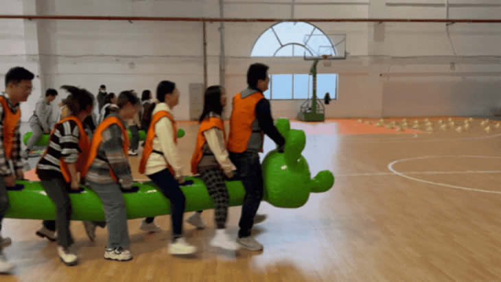隨著響亮的口哨聲,活動(dòng)正式開始!第一個(gè)項(xiàng)目是“毛毛蟲大比拼”,四支隊(duì)伍都領(lǐng)到了一只毛毛蟲作為團(tuán)隊(duì)“坐騎”,看似簡(jiǎn)單,實(shí)則不易。練習(xí)以后,大家都看出了項(xiàng)目的關(guān)鍵:考驗(yàn)團(tuán)隊(duì)協(xié)作力?!白笥易蟆薄耙欢弧备麝?duì)各自喊著口號(hào)步伐一致地奔赴終點(diǎn)!