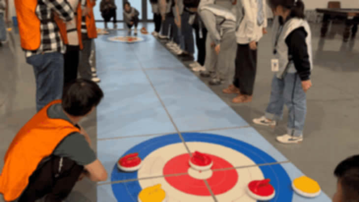 最后來到了大家期待已久的“冰壺大作戰(zhàn)”。旱地冰壺的投擲環(huán)節(jié),既是技術(shù),也是戰(zhàn)術(shù),令人驚喜的是,各隊(duì)很快就擬定了“作戰(zhàn)方針”,隨著賽程進(jìn)展,拉引擊球(Draw)、防衛(wèi)擊球(Guard)、敲退擊球(Freeze)、晉升擊球(Promote)、射擊移位擲球(HitandRoll)等變換自如。大家在比賽中時(shí)而屏息凝神,時(shí)而拍掌喝彩,將團(tuán)建活動(dòng)推向了高潮。