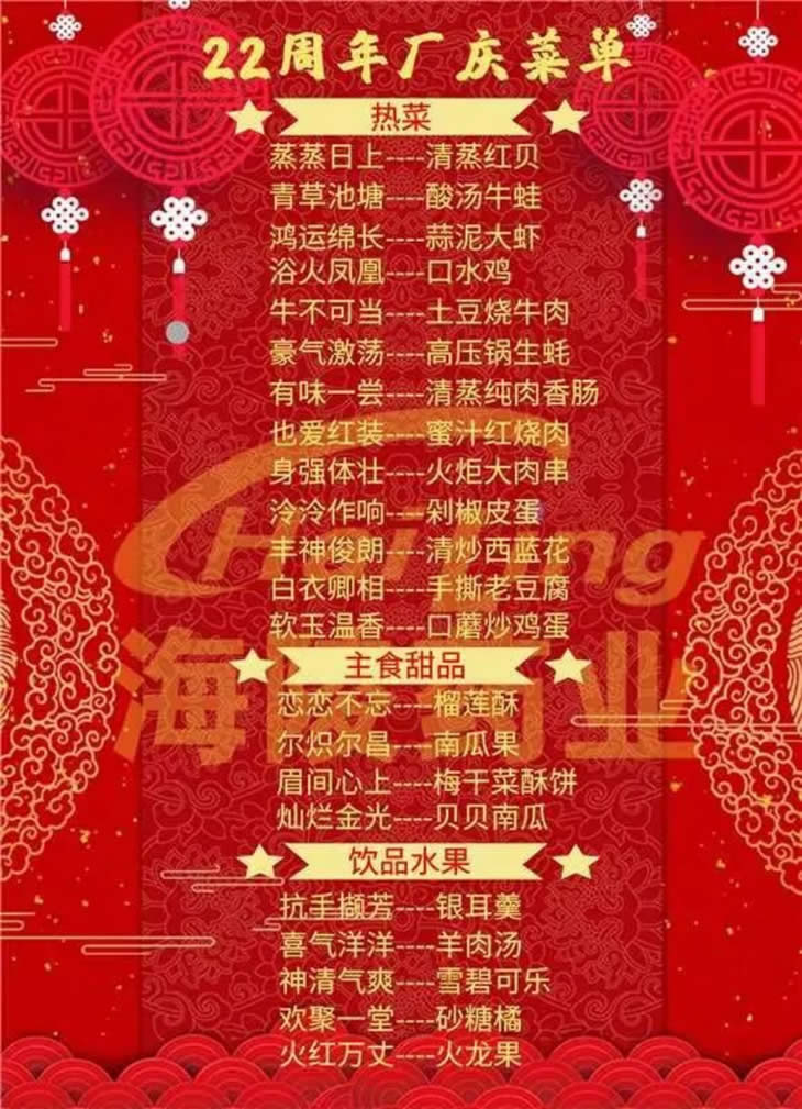 二十二年!是一道歷史印跡的長度!是揚帆逐夢,轉(zhuǎn)型發(fā)展的高度!海陵食堂準備了豐盛的廠慶自助餐活動,邀請大家一起共享這份喜悅,見證奮進者的光芒~